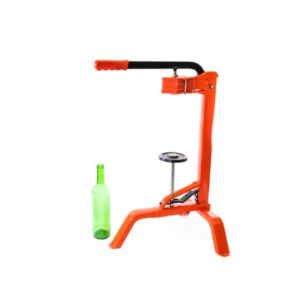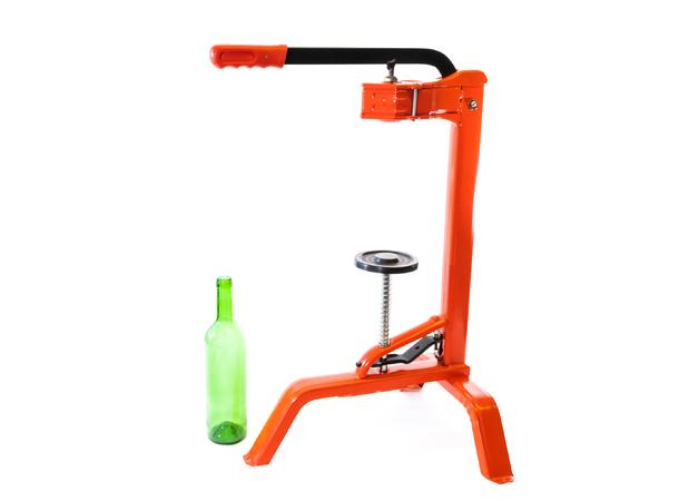 Smidig korkemaskin for vinflasker. Kan anvendes på benk eller på gulvet. For naturkork og syntetisk kork.